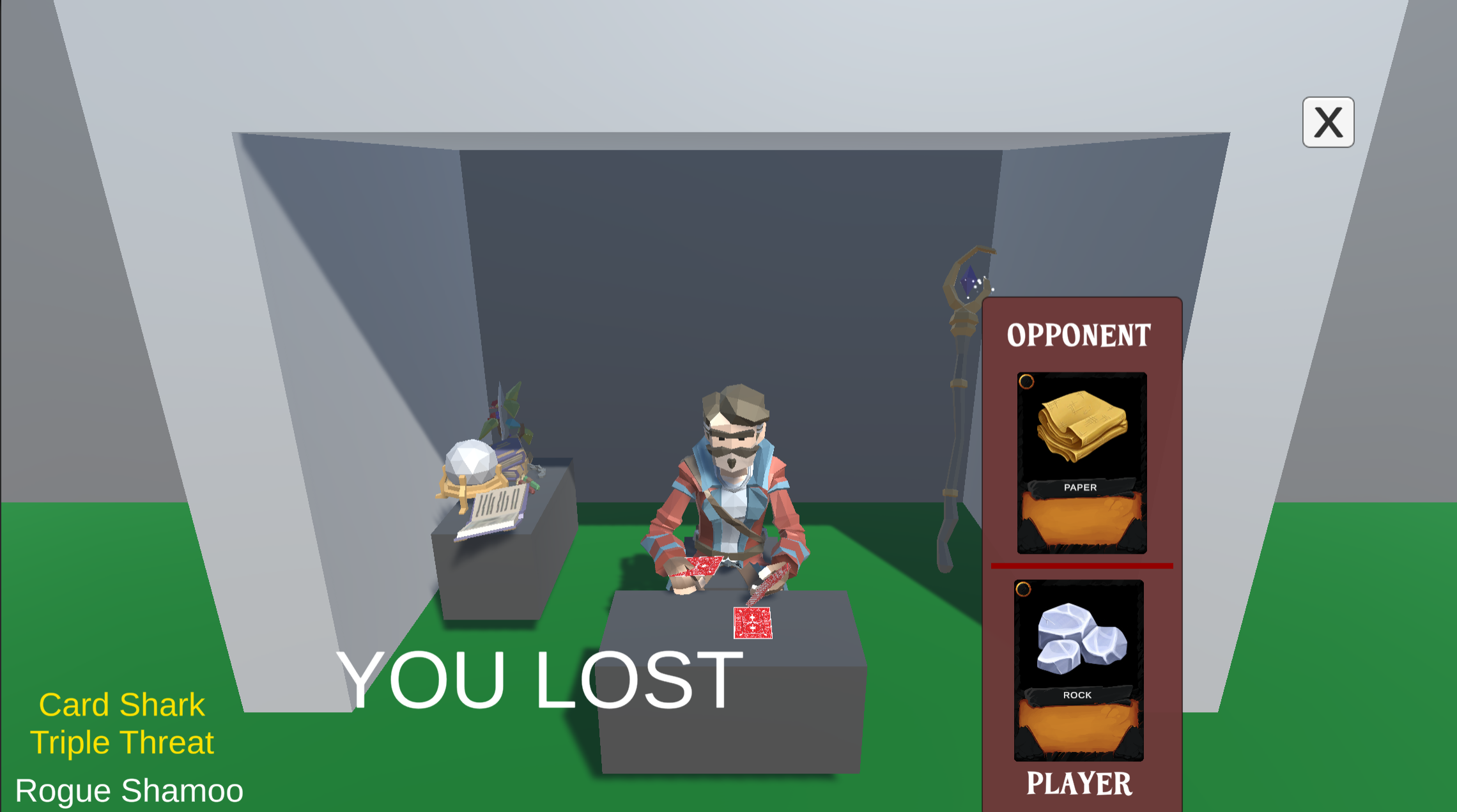 I had been puzzling over how to simulate a rock-paper-scissors encounter when it occurred to me to create two more games, similar in scope and concept, that could be used as mini-games in other interactions/games.